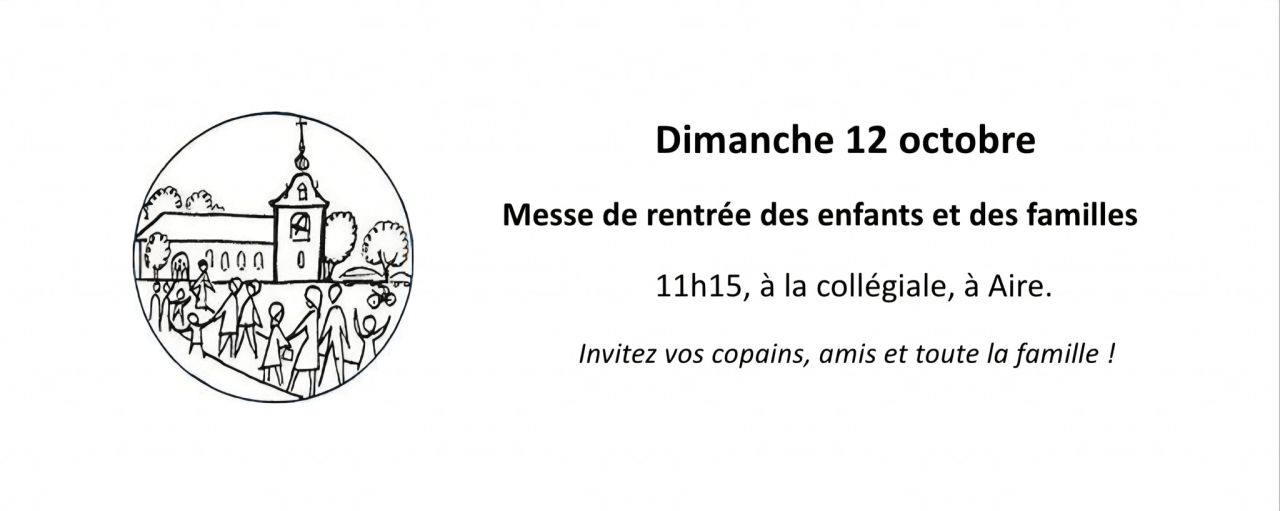 la messe de rentrée aura lieu ce dimanche 12 octobre en la Collégiale Saint Pierre d'Aire-sur-la-Lys.